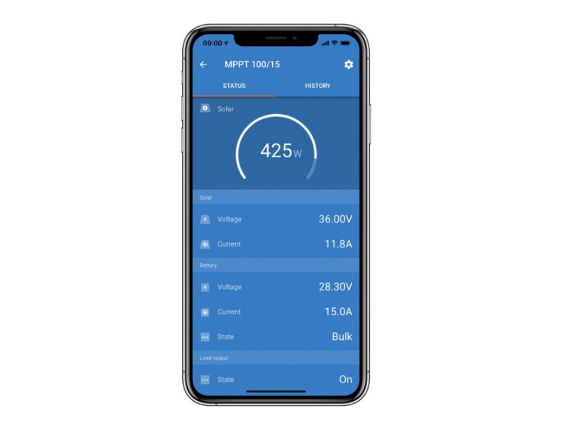 Avec le régulateur de charge MPPT de Victron Energy, vous augmentez le rendement énergétique de 30 % par rapport aux régulateurs PWM, et le régulateur MPPT de Victron Energy est également 10 % plus efficace que les régulateurs MPPT plus lents. Le régulateur de charge est livré avec un manuel, disponible en néerlandais et en anglais. Vous pouvez également voir la production des panneaux solaires via l’application Victron Energy, appelée « VictronConnect », facilement téléchargeable sur l’App Store et le Play Store. De plus, un fusible est intégré dans le régulateur de charge.